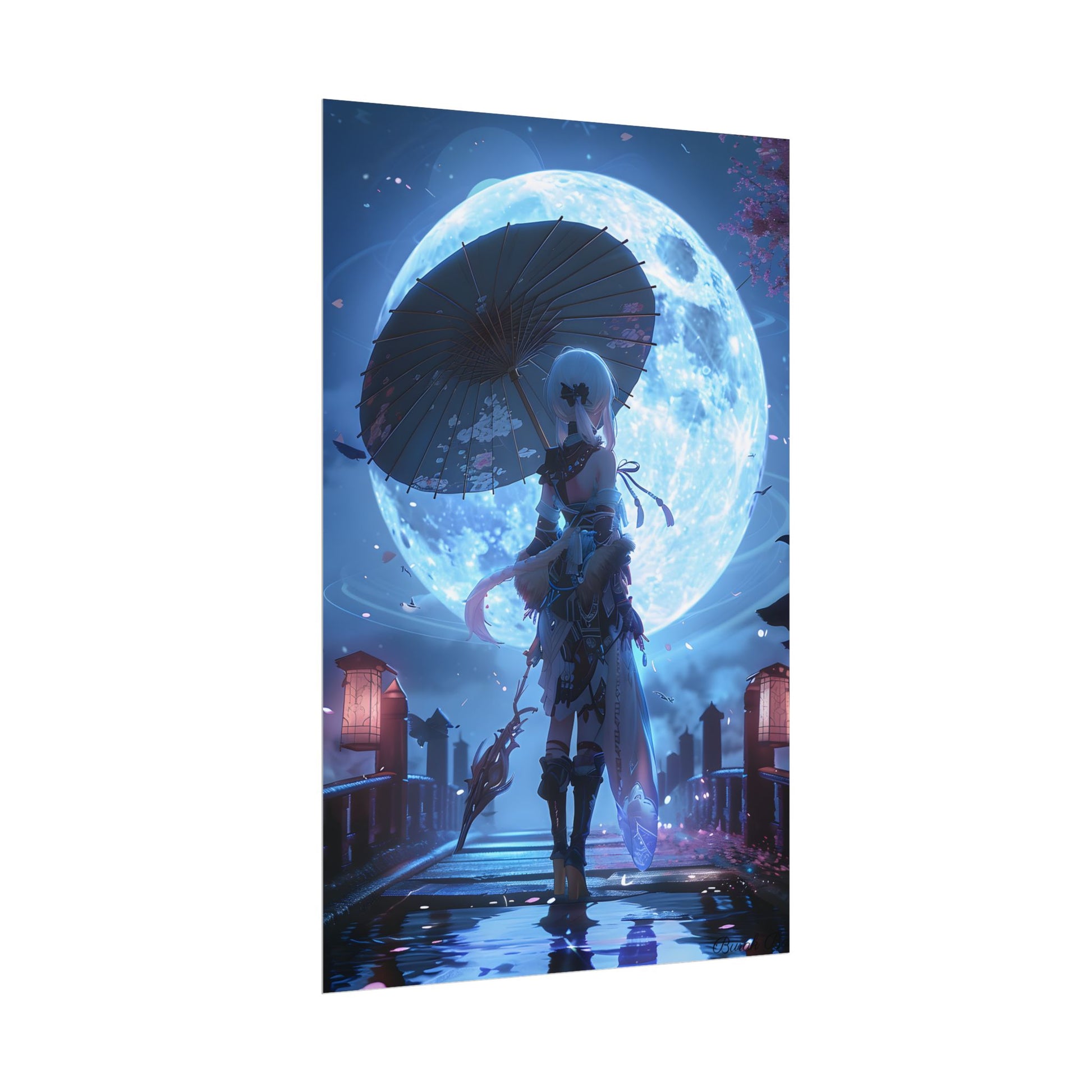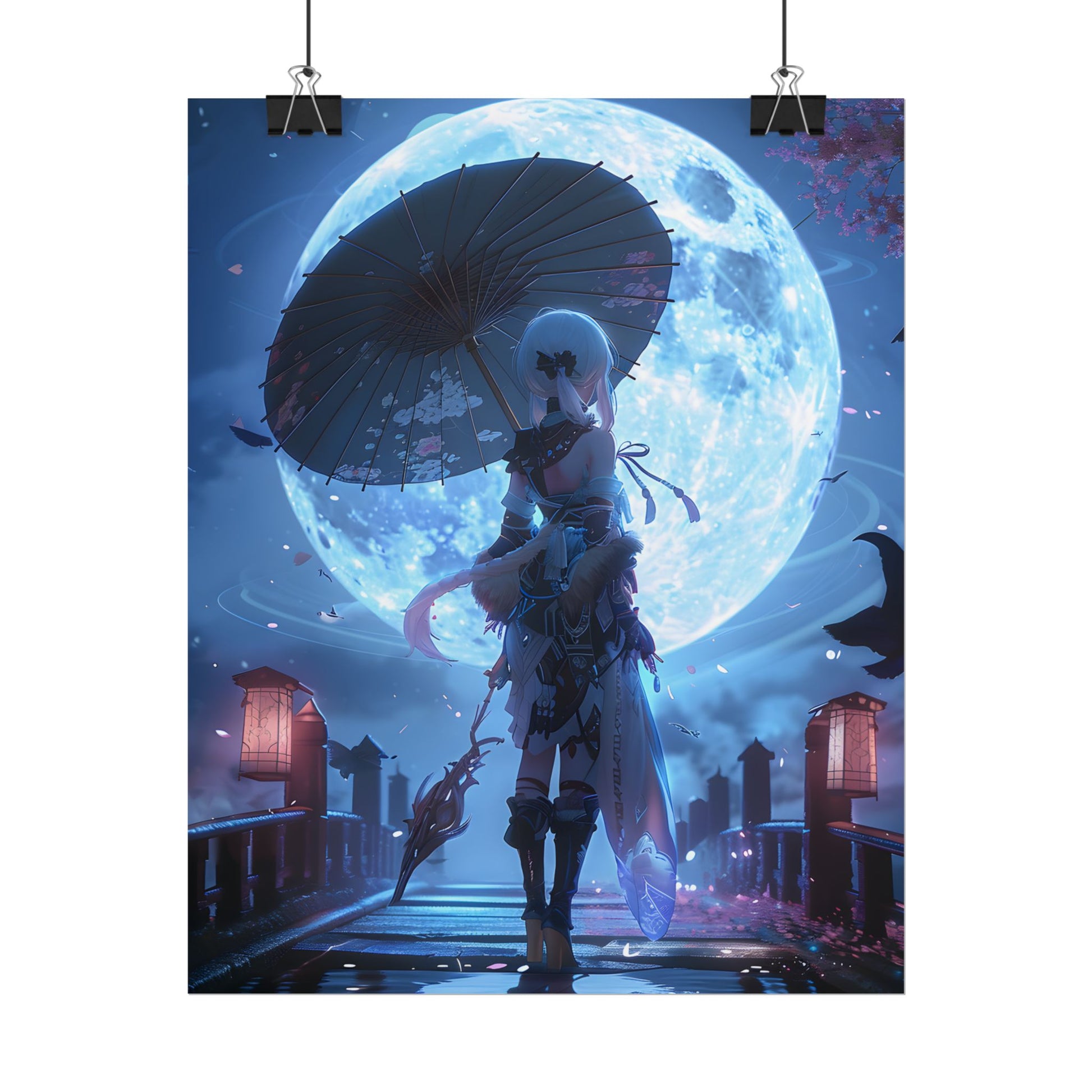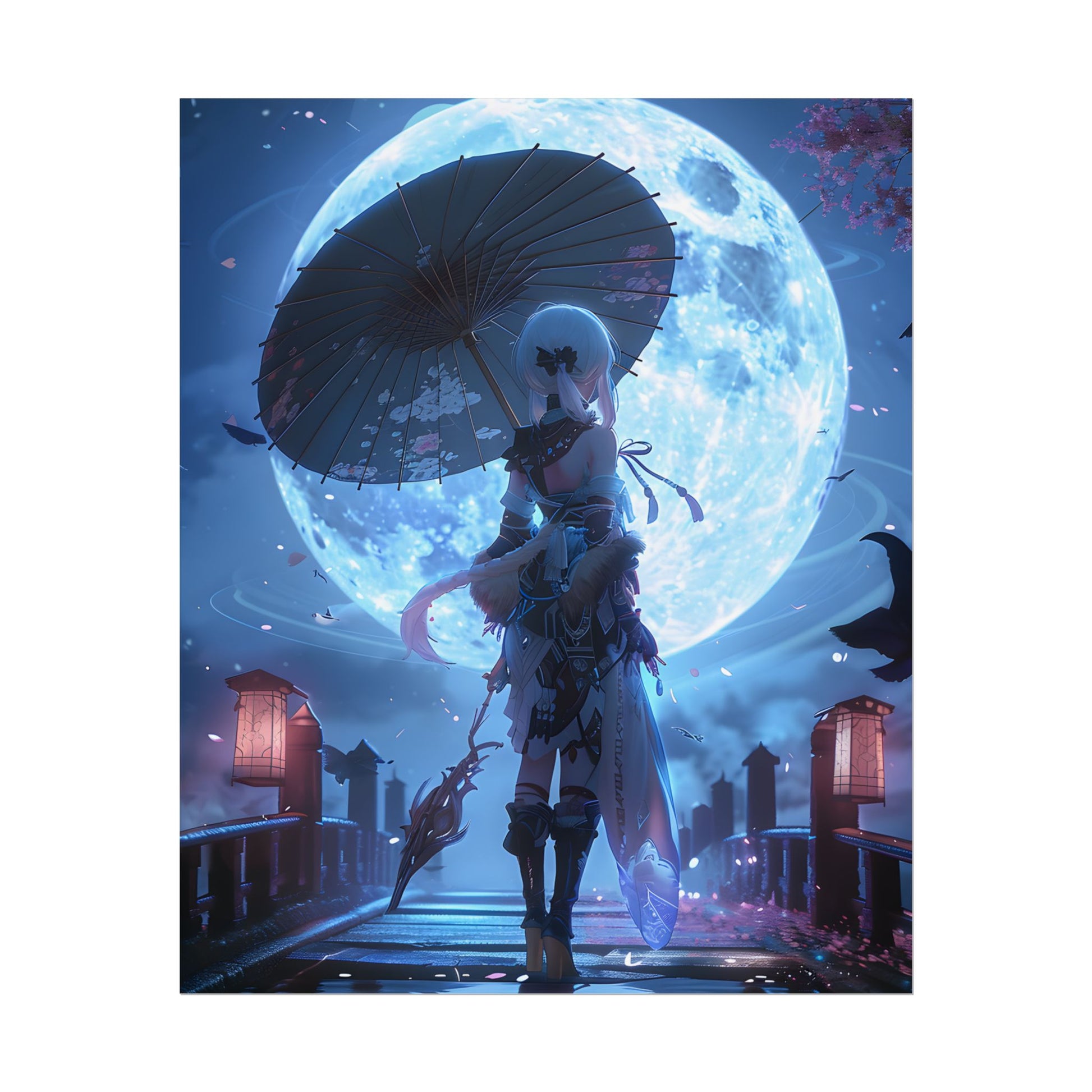 Step into a serene winter wonderland with the Anime Winter Scene Poster. This beautiful 24x36 inch print features an animated girl holding an umbrella, standing amidst a snow-covered landscape. Her short hair and winter clothing make her stand out against the white background, as she looks upwards and to her right. Perfect for fans of anime and manga, this poster is not only a stunning addition to any room but also a unique conversation starter. Get yours today!
