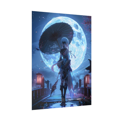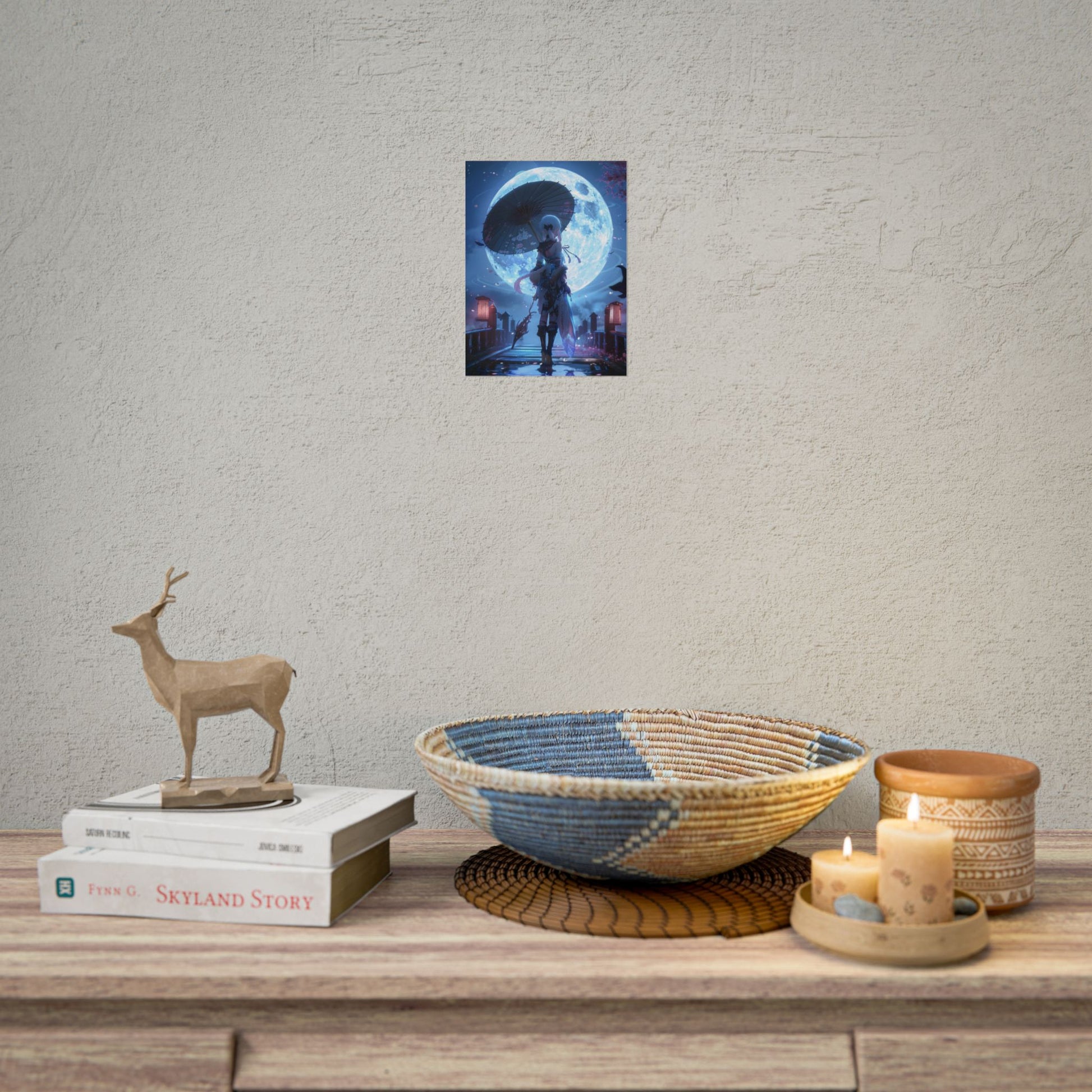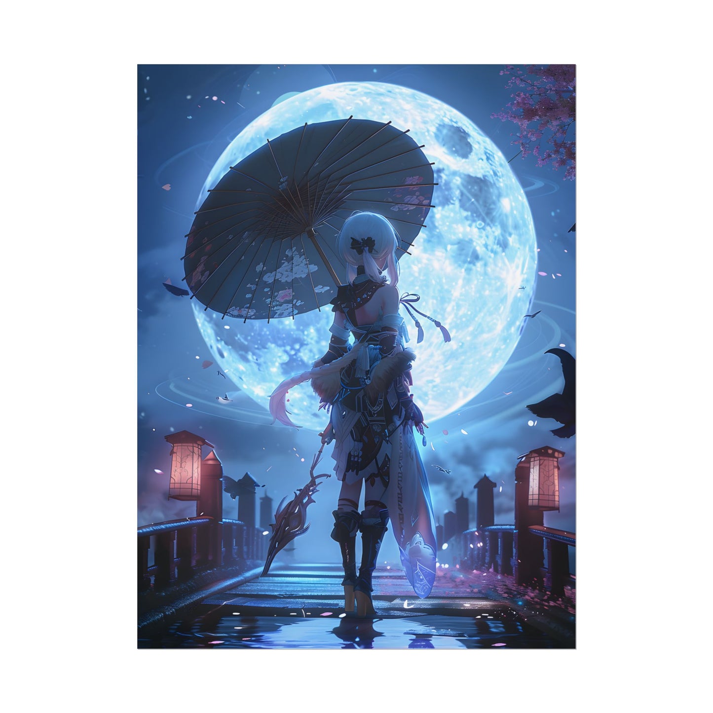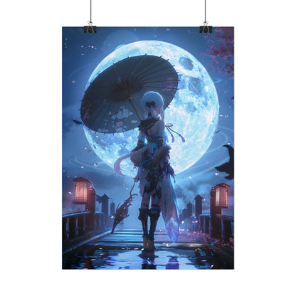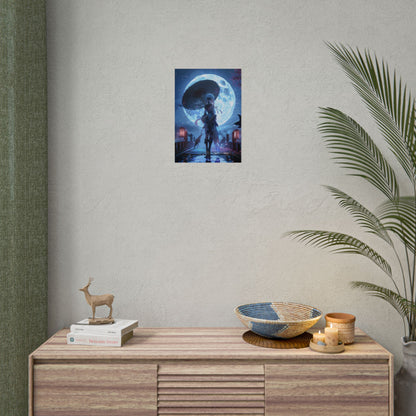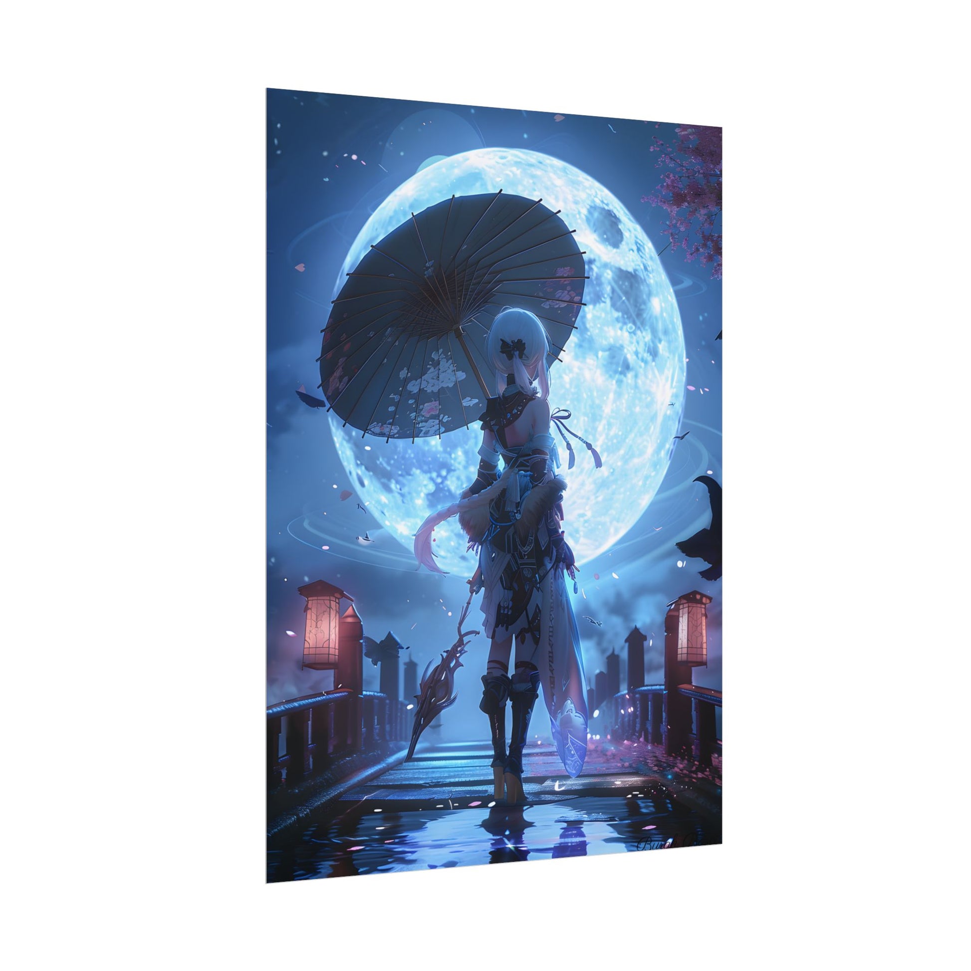 Step into a serene winter wonderland with the Anime Winter Scene Poster. This beautiful 24x36 inch print features an animated girl holding an umbrella, standing amidst a snow-covered landscape. Her short hair and winter clothing make her stand out against the white background, as she looks upwards and to her right. Perfect for fans of anime and manga, this poster is not only a stunning addition to any room but also a unique conversation starter. Get yours today!