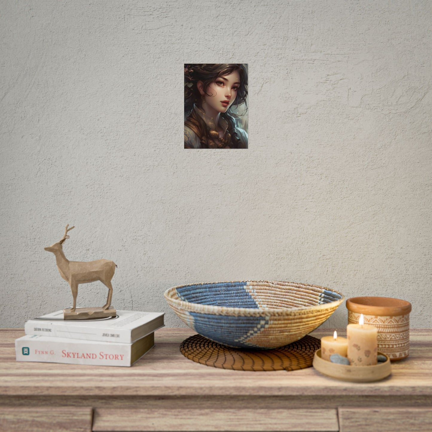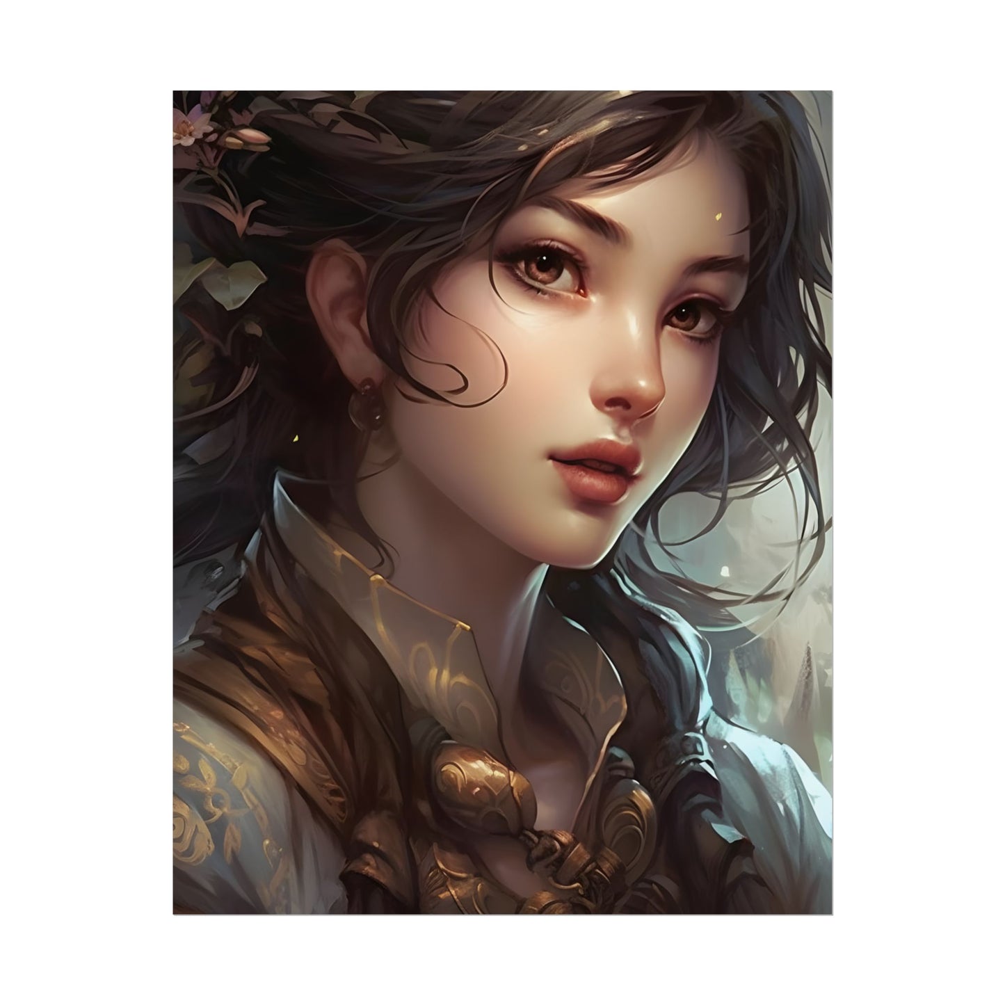 Elevate your space with the Astonishing Brunette Portrait Poster, a stunning digital artwork featuring a elegant woman with long, dark hair. Printed on high-quality paper, this 24x36 inch poster is perfect for modern home or office decor, adding a touch of sophistication and style to any room.