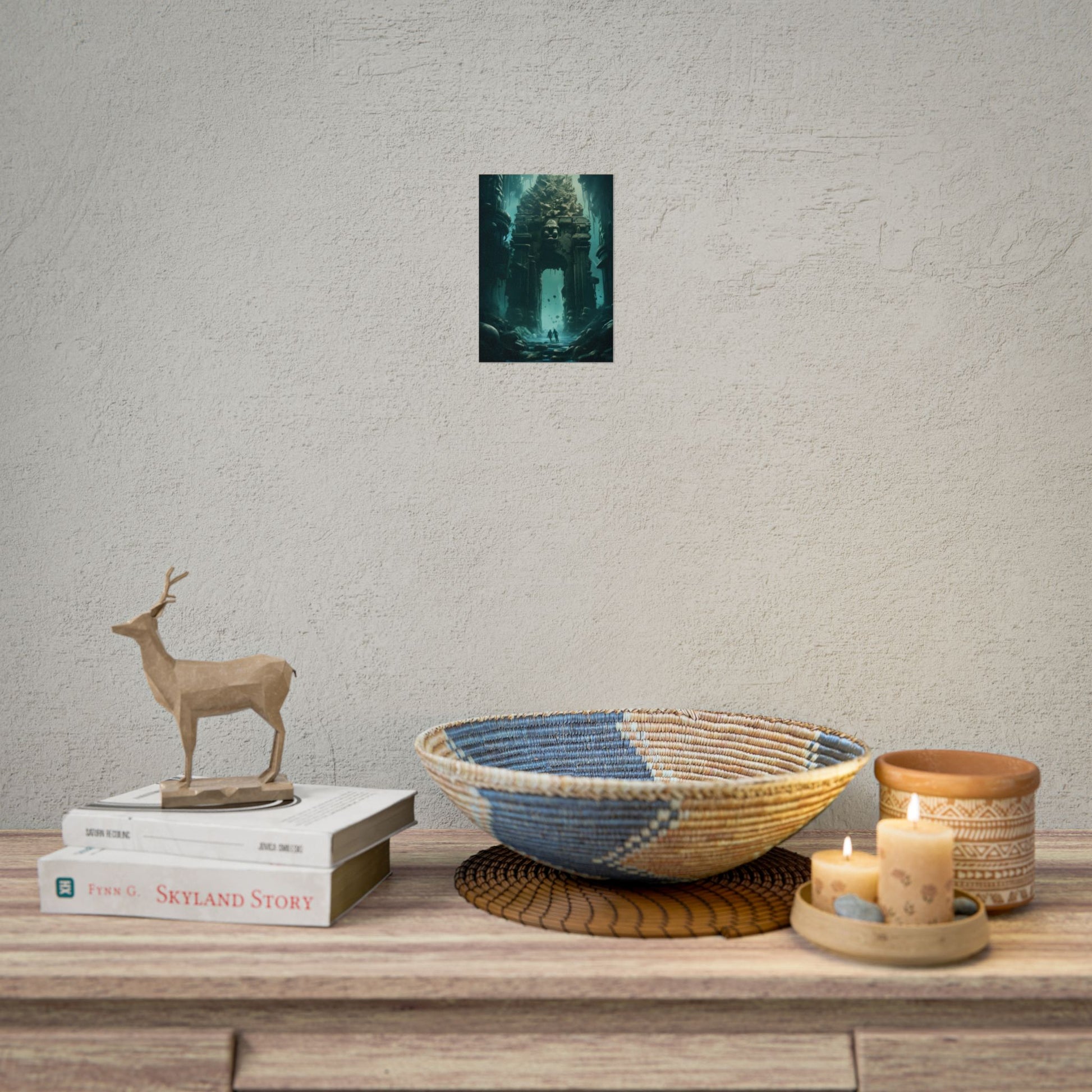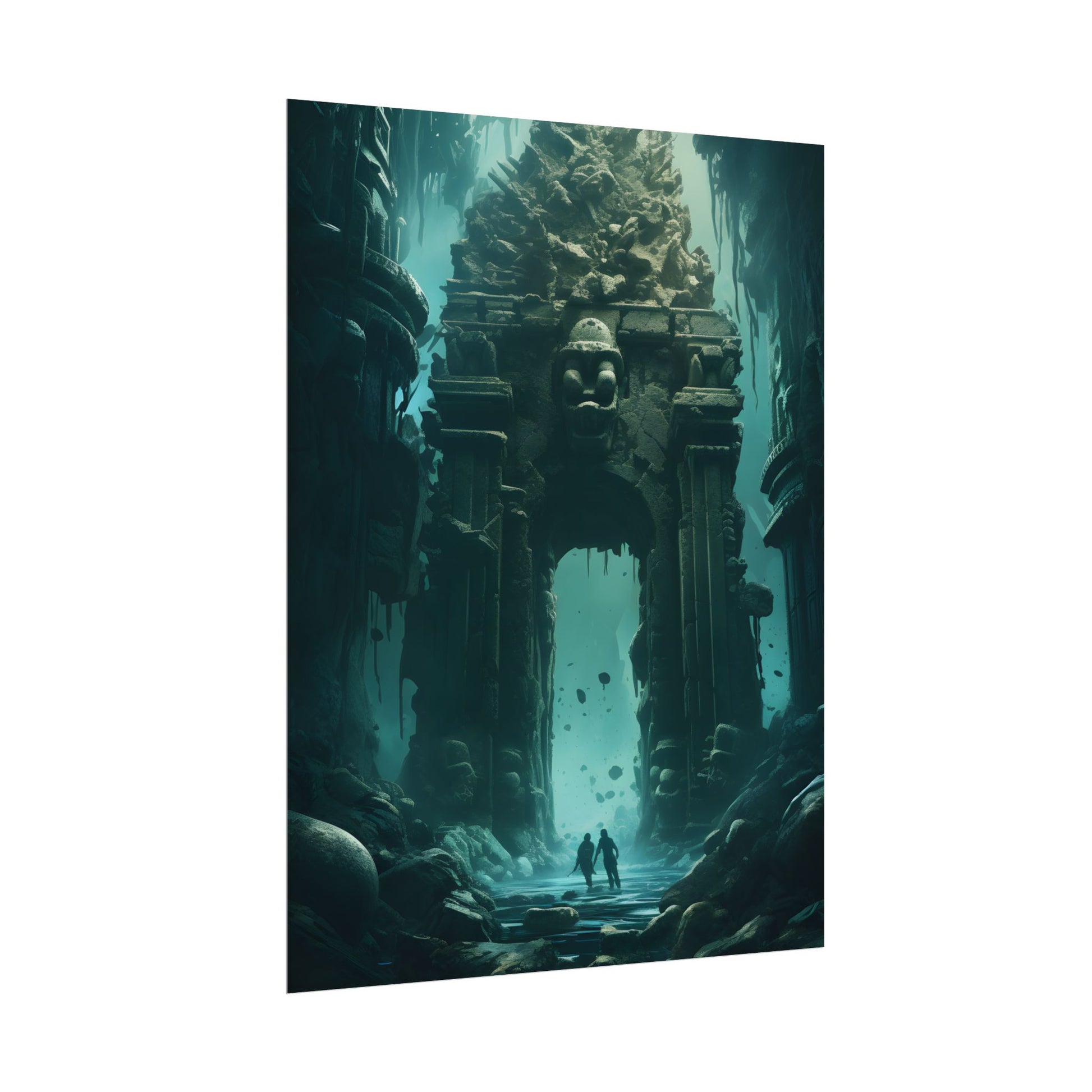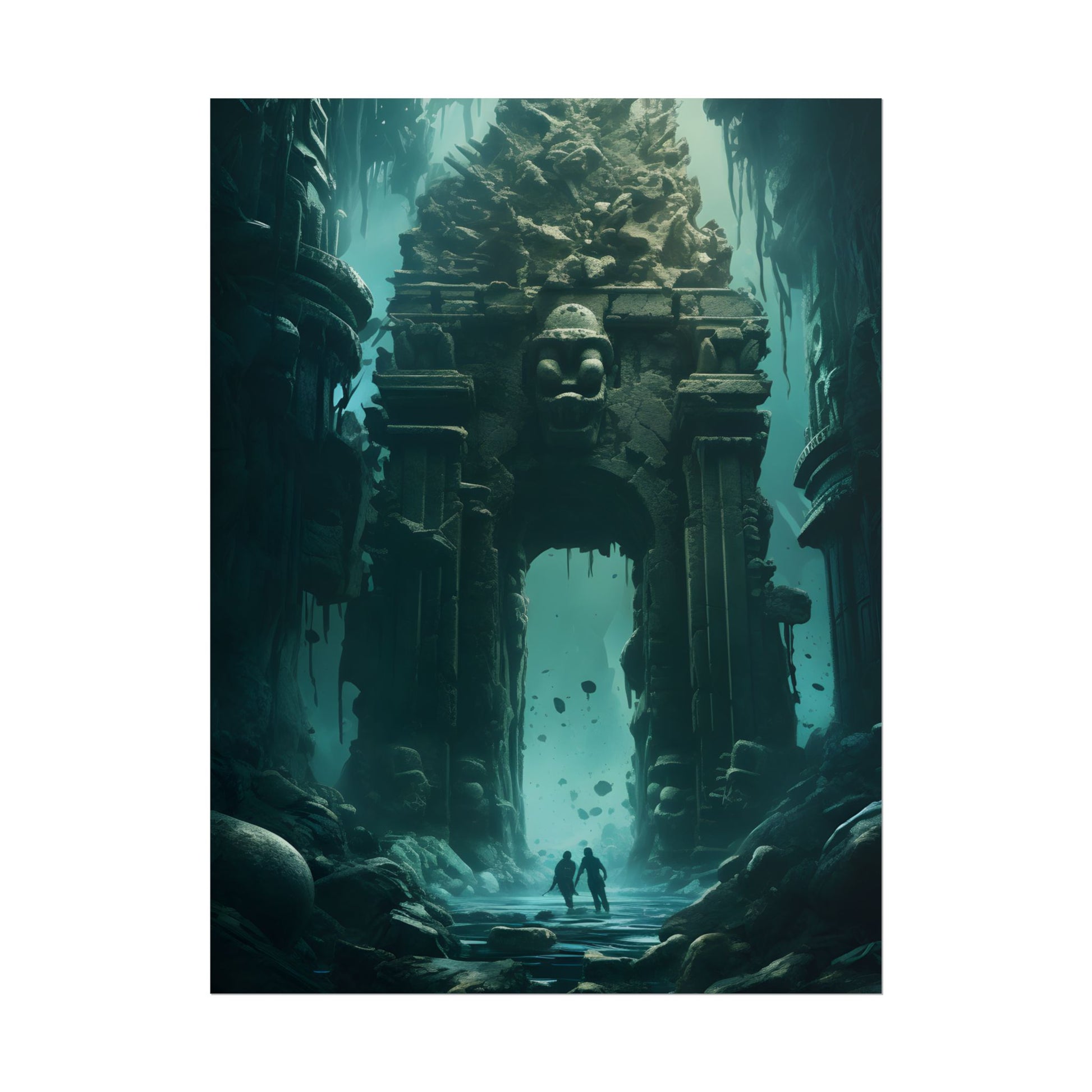 Dive into the depths of history with the Lost Underwater Ancient City Poster. Featuring a mesmerizing underwater scene from a lost civilization, this 24x36 inch print captures the essence of mystery and exploration. With muted blues and greens, this poster is perfect for fans of science fiction, history, or anyone looking to add an air of adventure to their space.