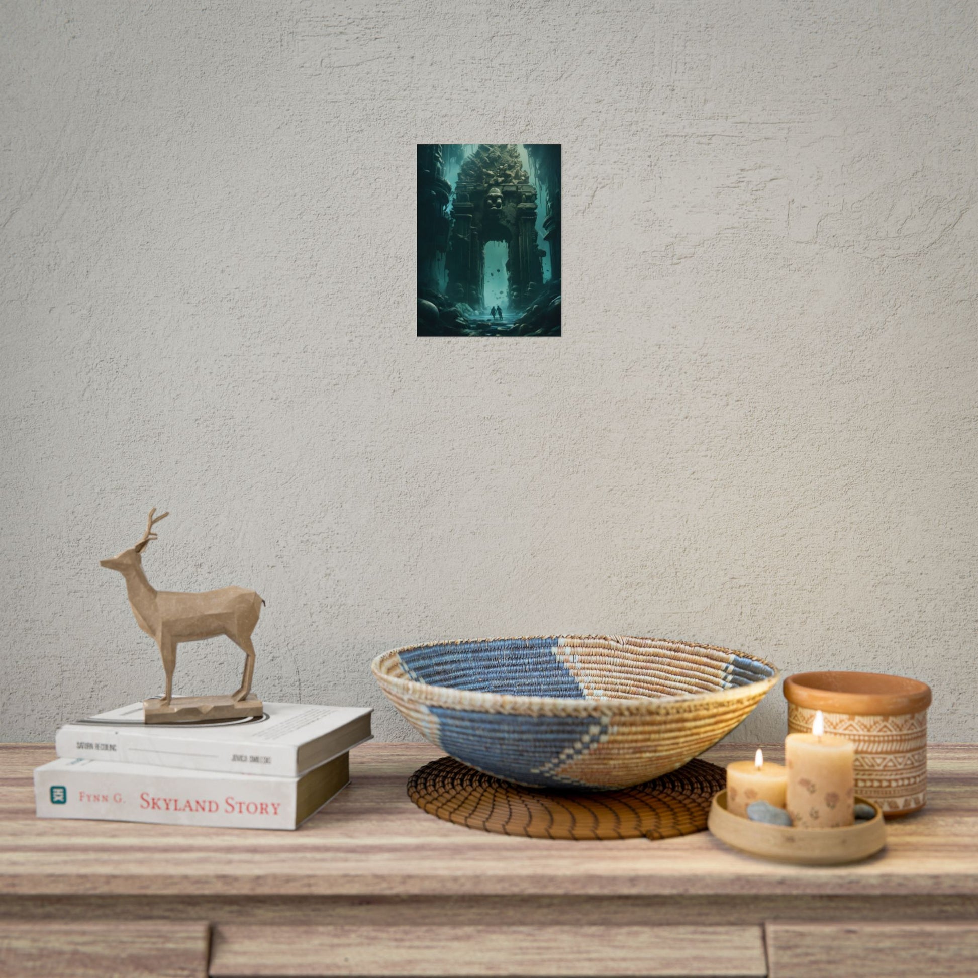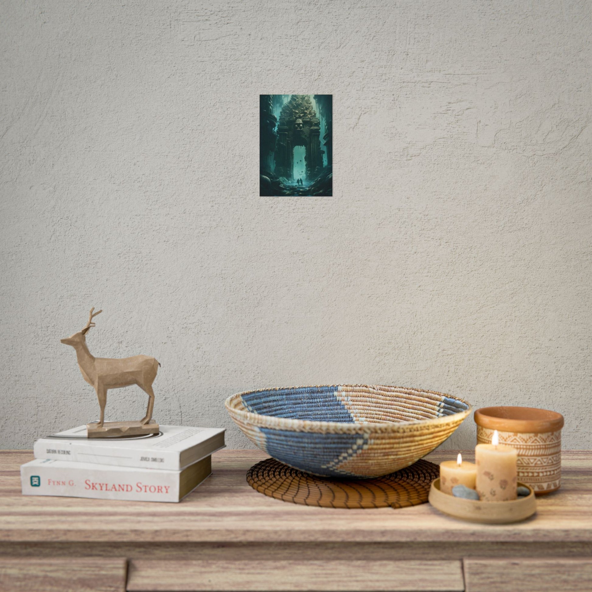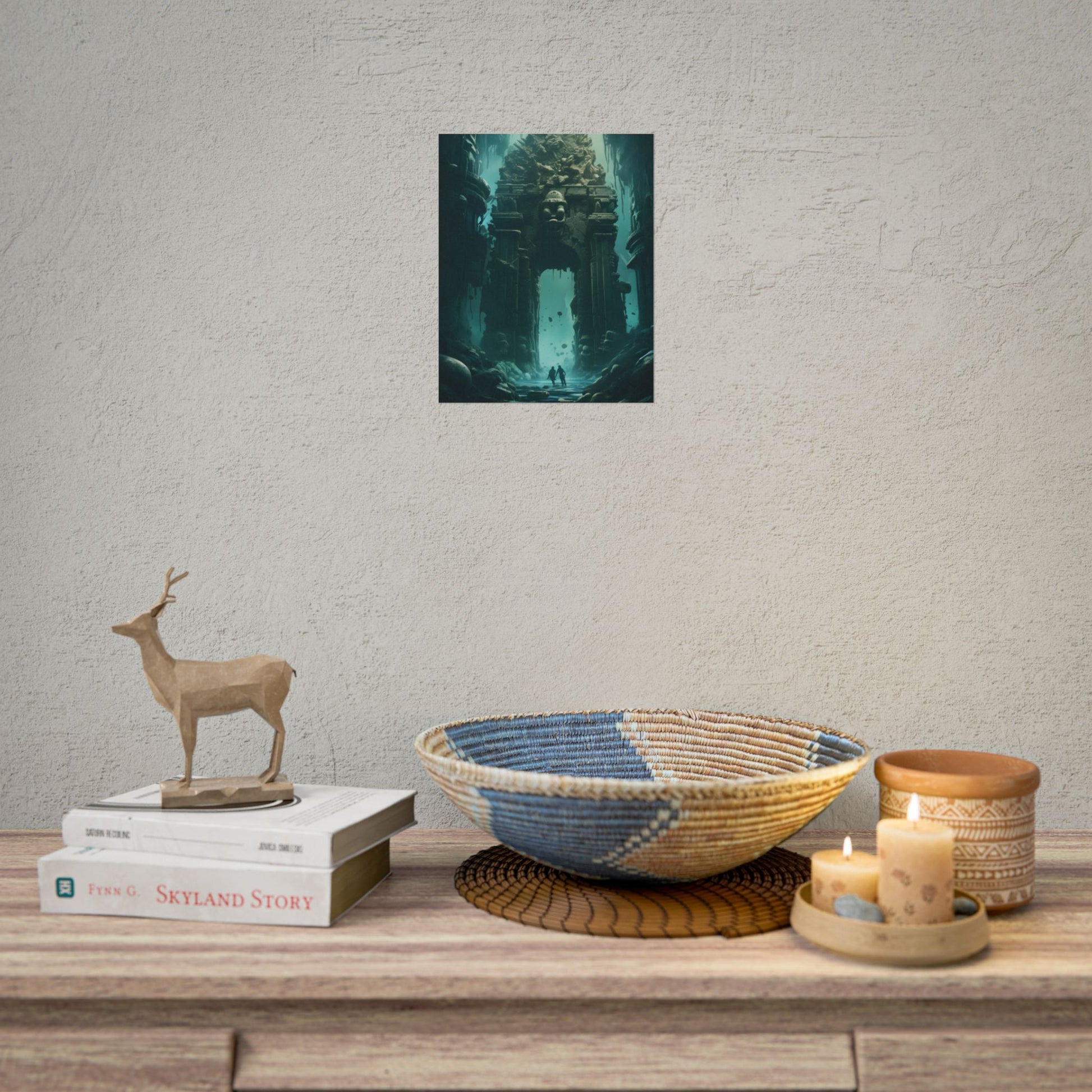 Dive into the depths of history with the Lost Underwater Ancient City Poster. Featuring a mesmerizing underwater scene from a lost civilization, this 24x36 inch print captures the essence of mystery and exploration. With muted blues and greens, this poster is perfect for fans of science fiction, history, or anyone looking to add an air of adventure to their space.