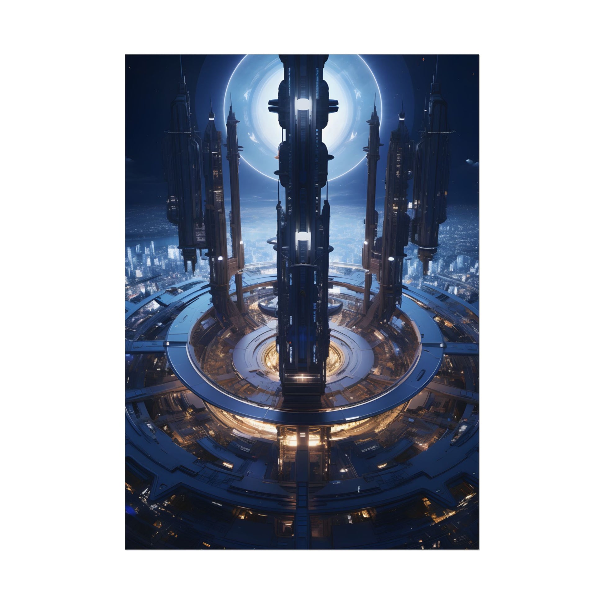 Explore the vast expanse of outer space with the Massive Space Station Poster. This detailed depiction of a massive, complex space station in the cosmos is printed on high-quality matte paper, perfect for fans of space exploration and science fiction.