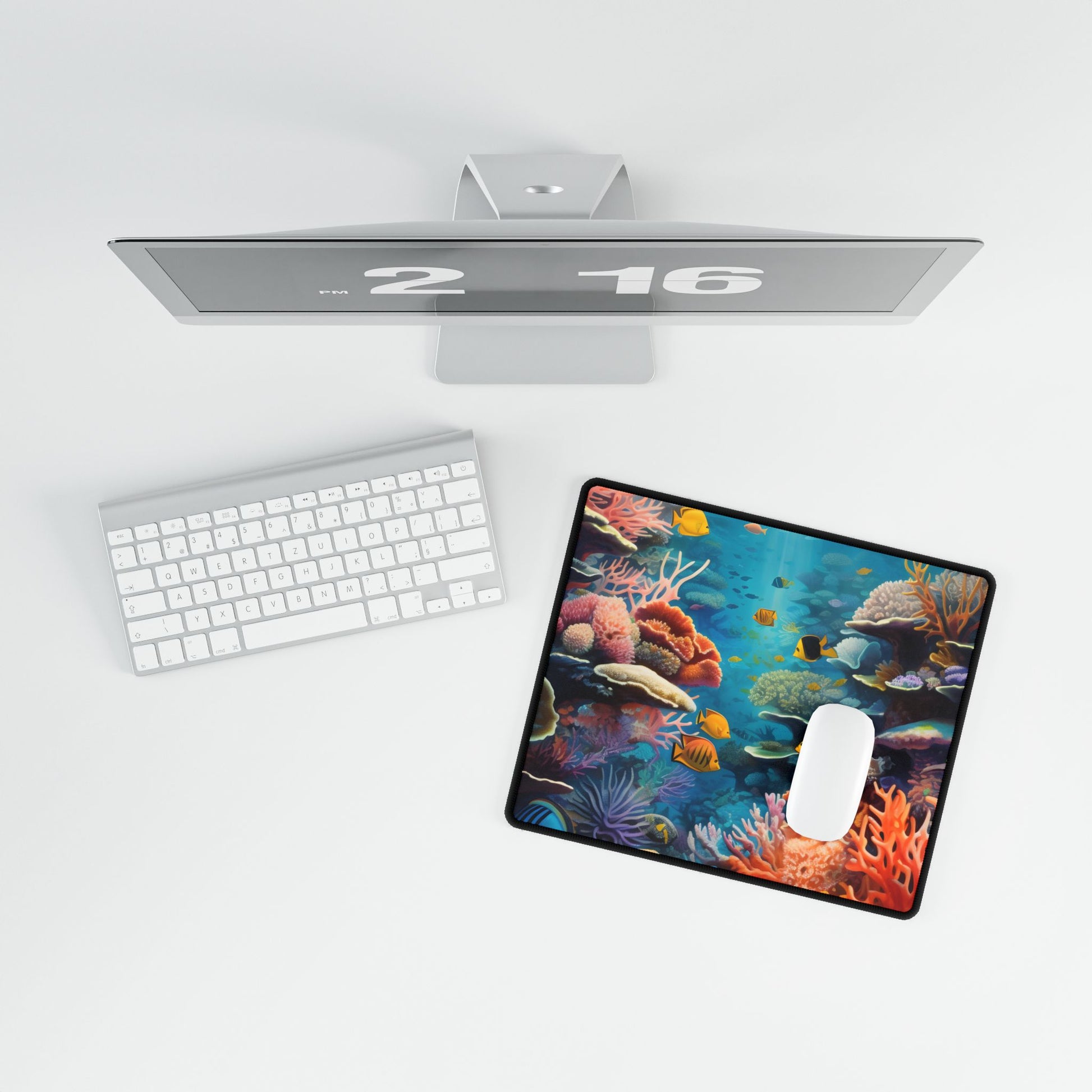 Escape to an underwater oasis with the Vibrant Coral Reef Sanctuary Desk Mat. This stunning image features a thriving coral reef teeming with marine life, printed on high-quality material that's perfect for your home or office desk. Let the soothing colors and tranquil atmosphere of this natural wonder bring calm and serenity to your workspace.