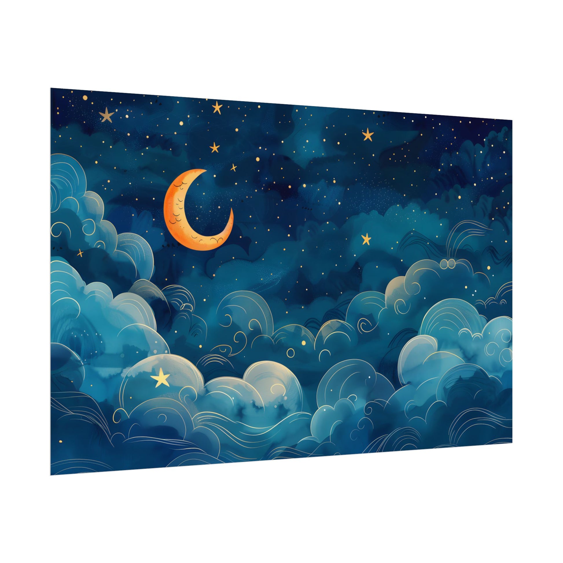 Add a touch of magic to your space with the Whimsical Dreamy Night Sky Poster! This stunning digital illustration features a dreamy night sky filled with soft pastel stars, a small town or village illuminated by warm street lamps and house lights, and a full moon hanging low on the horizon. Printed on high-quality matte paper, this 24x36 inch poster is perfect for modern home decor enthusiasts who appreciate unique and captivating art pieces.