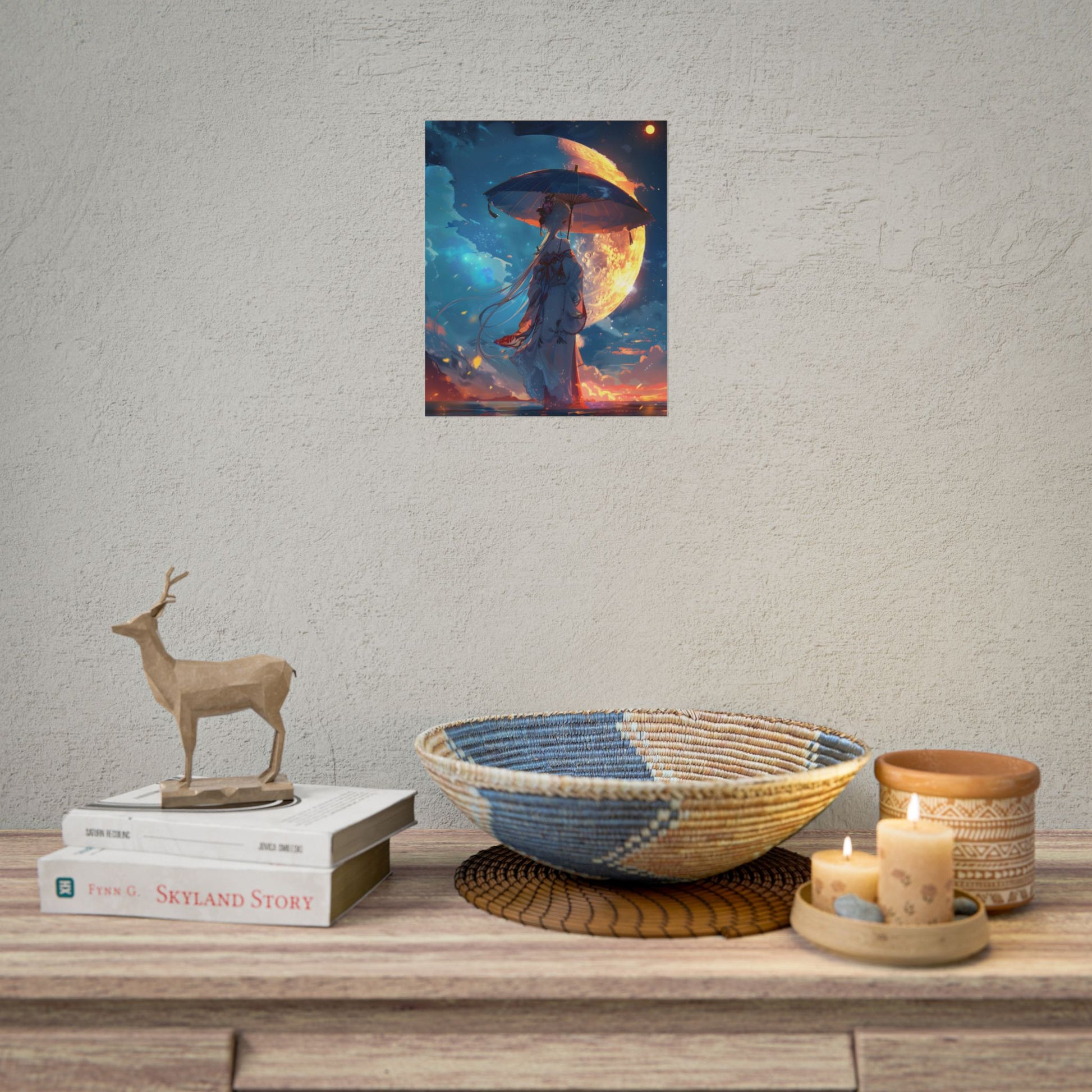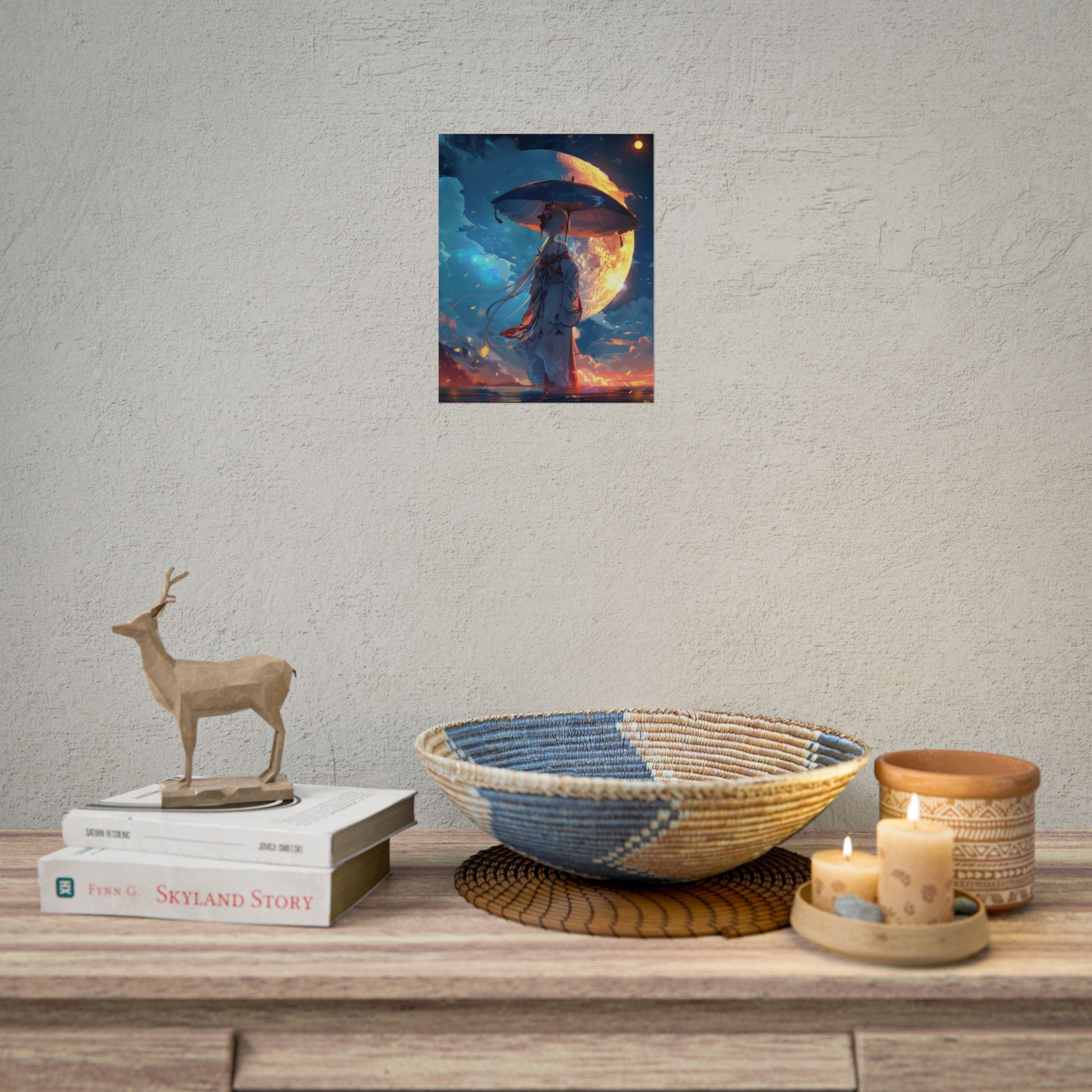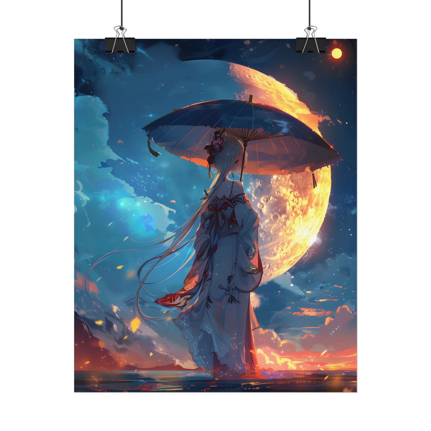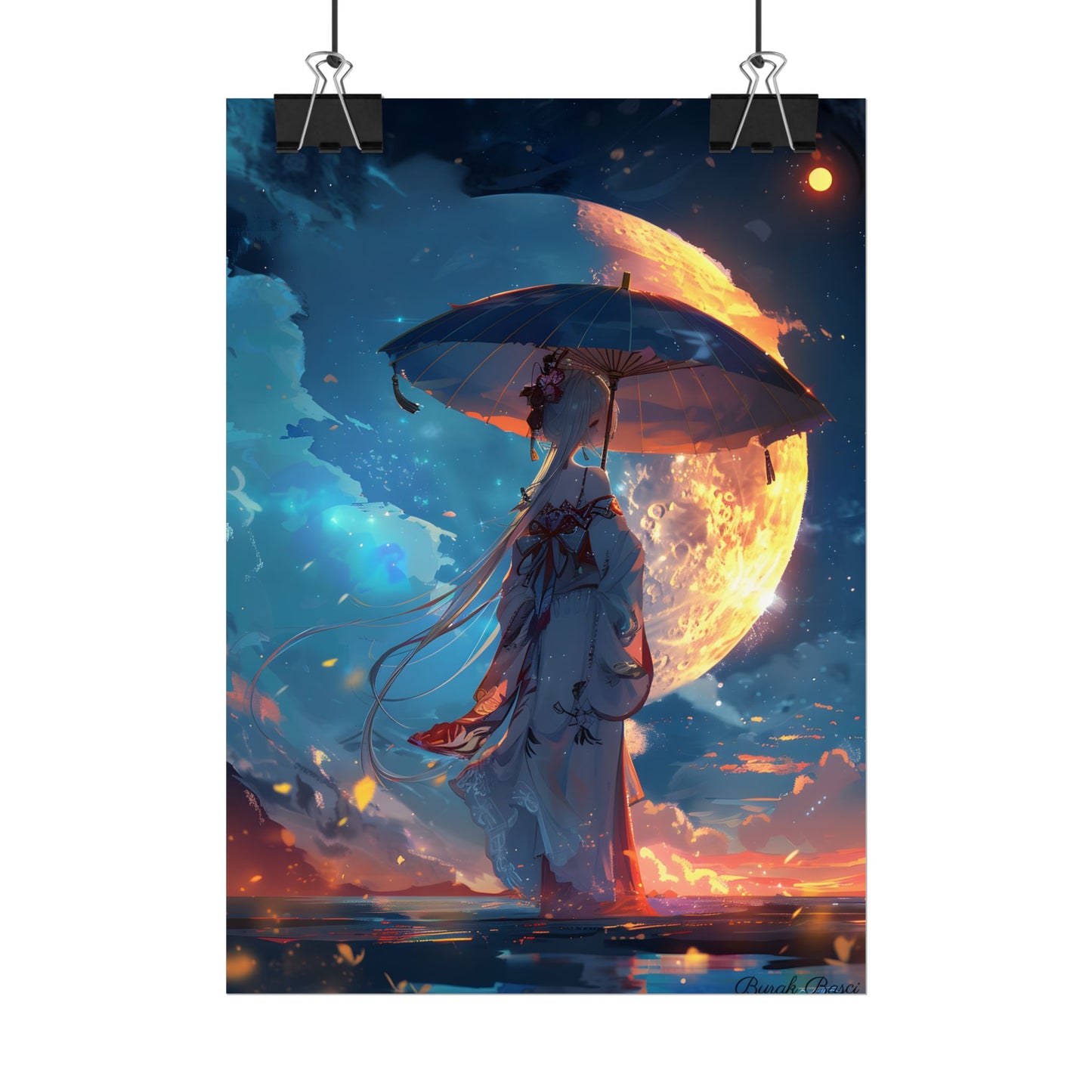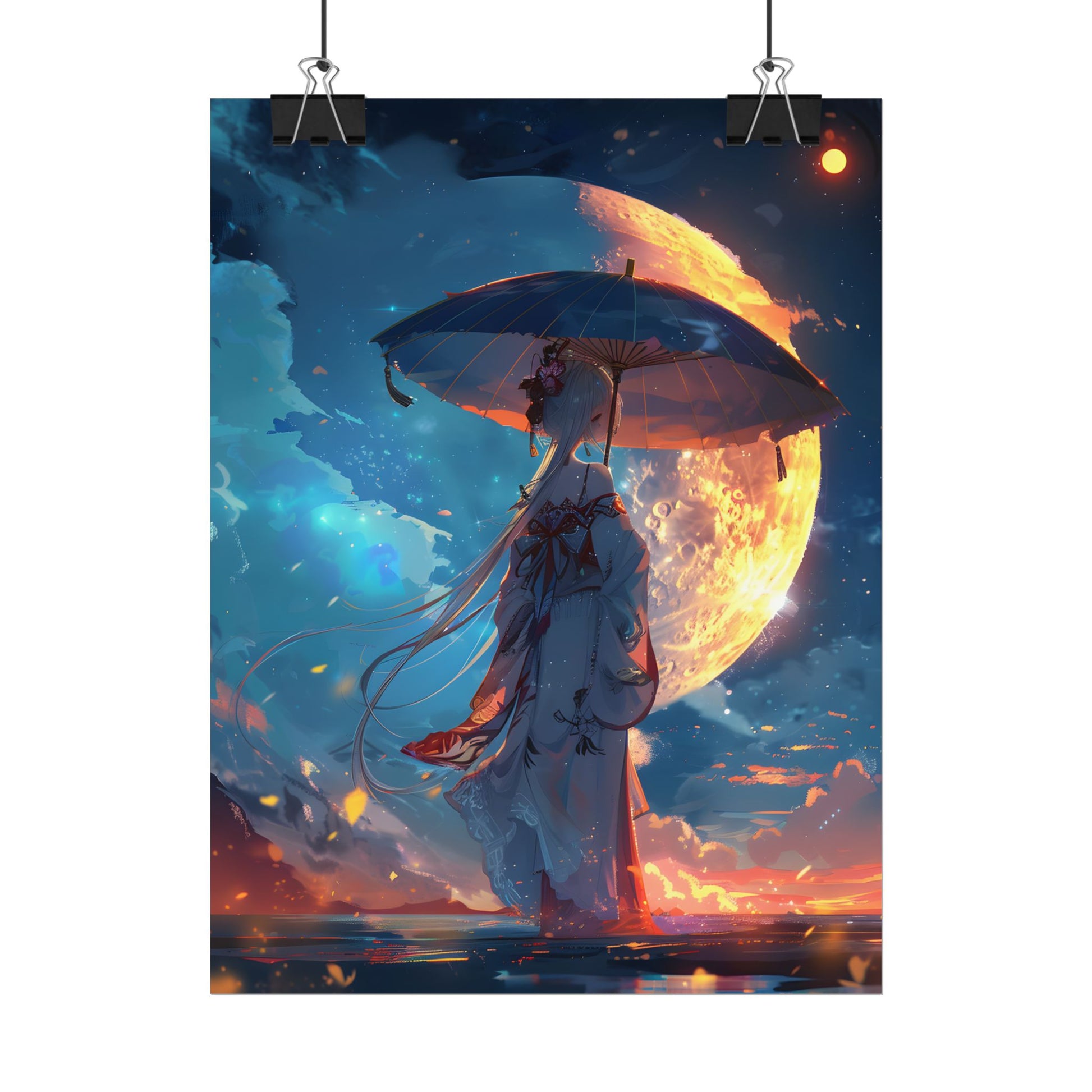 Escape into a serene winter wonderland with the Winter Anime Girl Poster. Featuring a beautifully illustrated anime style girl holding an umbrella in a snowy scene, this 24x36 inch poster is perfect for fans of anime and anyone who loves the magic of winter. Printed on high-quality matte paper, this eye-catching poster is sure to bring a touch of whimsy and wonder to any room.